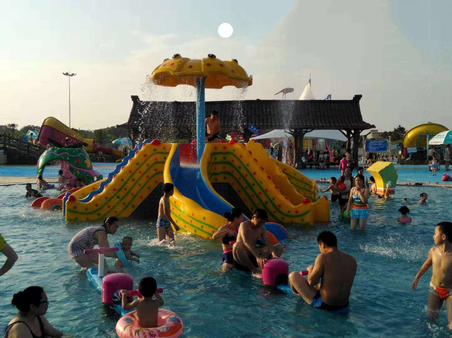 4. 社交能力:孩子們在玩水上樂園時,不僅起到游泳作用,還能在游玩的過程中和其它小朋友互動。家長們可以在這些孩子間的互動中分析孩子的心理及及時主動引導孩子的交流溝通方式,培養孩子的社會生存能力